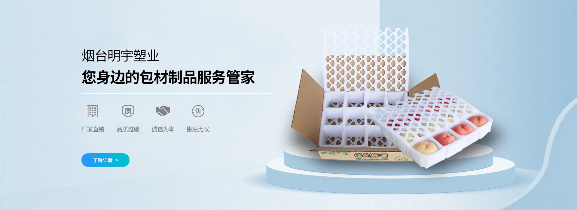 煙臺(tái)(tái)明宇塑料包裝廠(chǎng)成立于2012年8月7日,是一家生產(chǎn)(chǎn)塑料新穎包裝制品的企業(yè)(yè)。主營(yíng)(yíng)煙臺(tái)(tái)PE拉伸膜,煙臺(tái)(tái)EPE珍珠棉,煙臺(tái)(tái)軟泡沫等產(chǎn)(chǎn)品,擁有專(zhuān)業(yè)(yè)的技術(shù)(shù)人員,采用專(zhuān)業(yè)(yè)的技術(shù)(shù)設(shè)(shè)備,配以科學(xué)(xué)完善的管理制度,在激烈的市場(chǎng)(chǎng)競(jìng)(jìng)爭(zhēng)(zhēng)中,我們會(huì)(huì)特別注重質(zhì)(zhì)量,服務(wù)(wù)和環(huán)(huán)保意識(shí)(shí),在全體同仁不懈的努力下,產(chǎn)(chǎn)品深受廣大用戶(hù)的好評(píng)(píng),我們將攜手共創(chuàng)(chuàng)美好的未來(lái)(lái),我們期待著與你的合作!